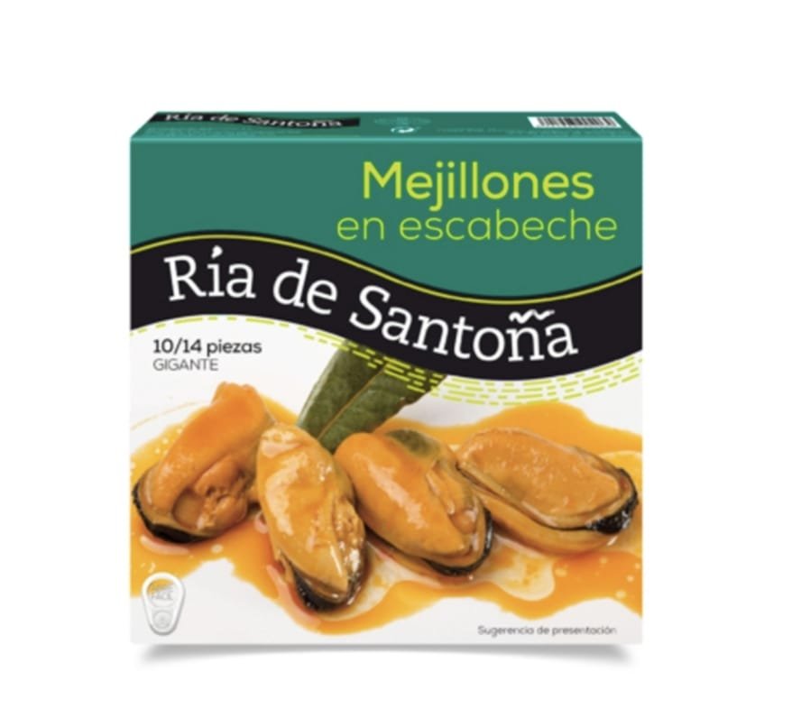 Elaborado en Galicia, mantiene la tradición, hoy prácticamente perdida, de freir el mejillón para ganar en consistencia. Tamaño Gigante a partir de Mejillones obtenidos en Nueva Zelanda.